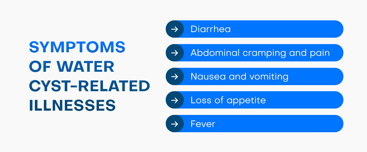 Ingesting water contaminated with parasitic cysts can lead to debilitating and uncomfortable illnesses, collectively known as waterborne diseases. The onset of symptoms typically occurs a few days to two weeks after exposure. For both Giardiasis and Cryptosporidiosis, the symptoms are primarily gastrointestinal and may include: