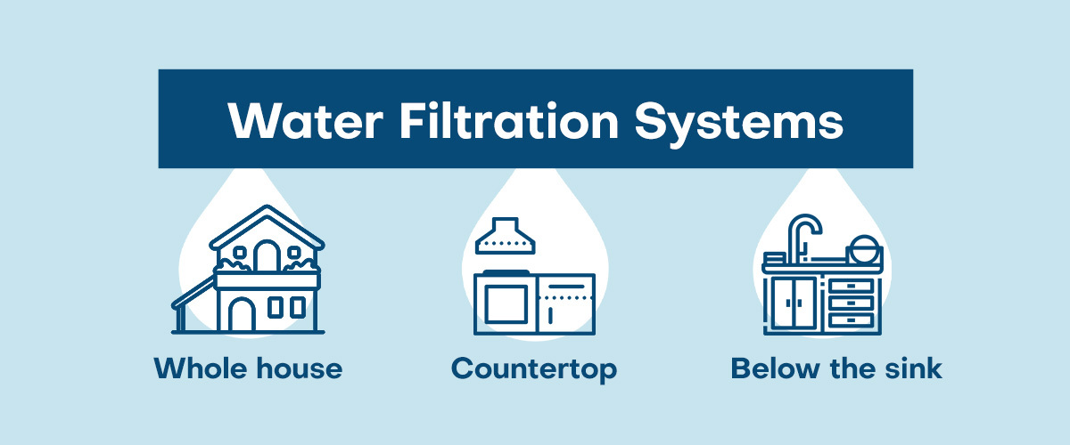 - Whole house: A whole-house water filter is installed on your home's main water line. It filters chlorine, chloramine, and limescale before they enter your pipes and provides clean water throughout your home, including every faucet, shower, and appliance.